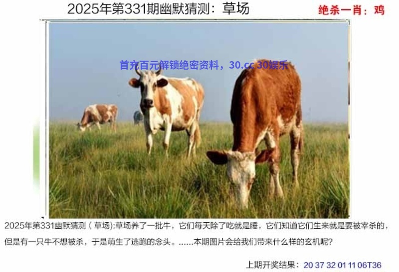 草场养了一批牛,它们每天除了吃就是睡,它们知道它们生来就是要被宰杀的,但是有一只牛不想被杀,于是萌生了逃跑的念头。..本期图片会给我们带来什么样的玄机呢?
